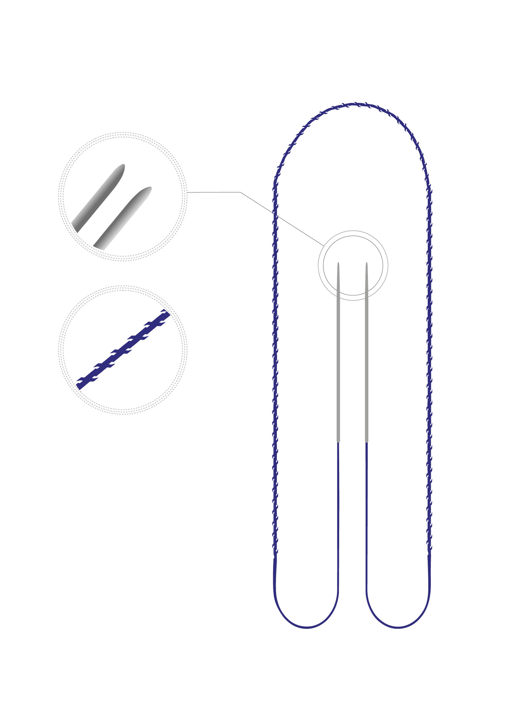 Система для установки IROXIN® 4D Thread Double Needle представляет собой нить, на обоих концах которой закреплены иглы. Игла с двумя лезвиями изготовлена так, чтобы поверхность крепления иглы и нити была гладкой, что позволяет минимизировать повреждение кожи и тканей.