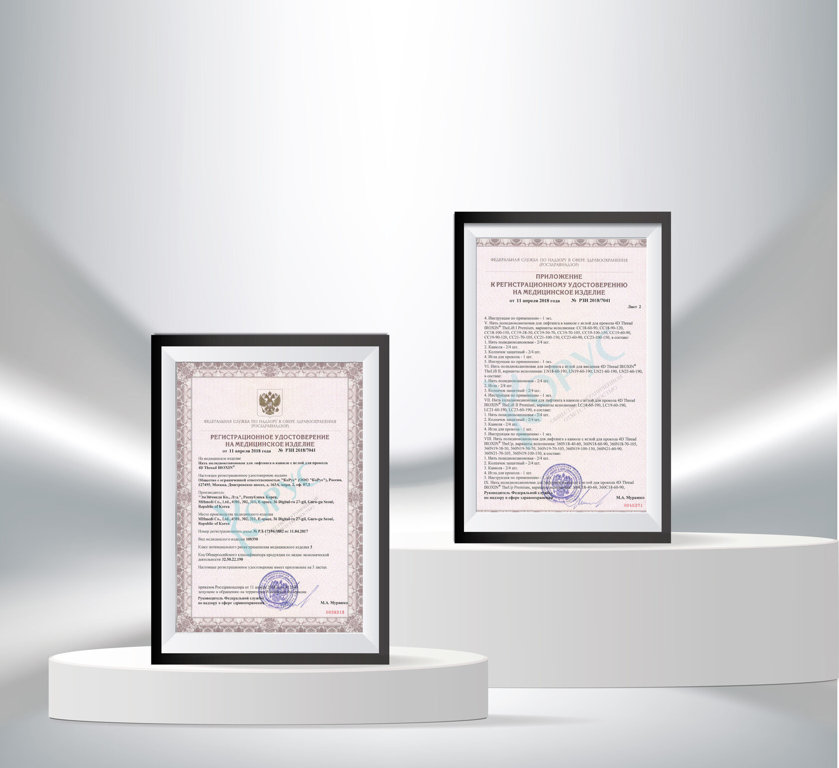 Обновленное регистрационное удостоверение РФ No РЗН 2018/7041 от 11 апреля 2018 года
